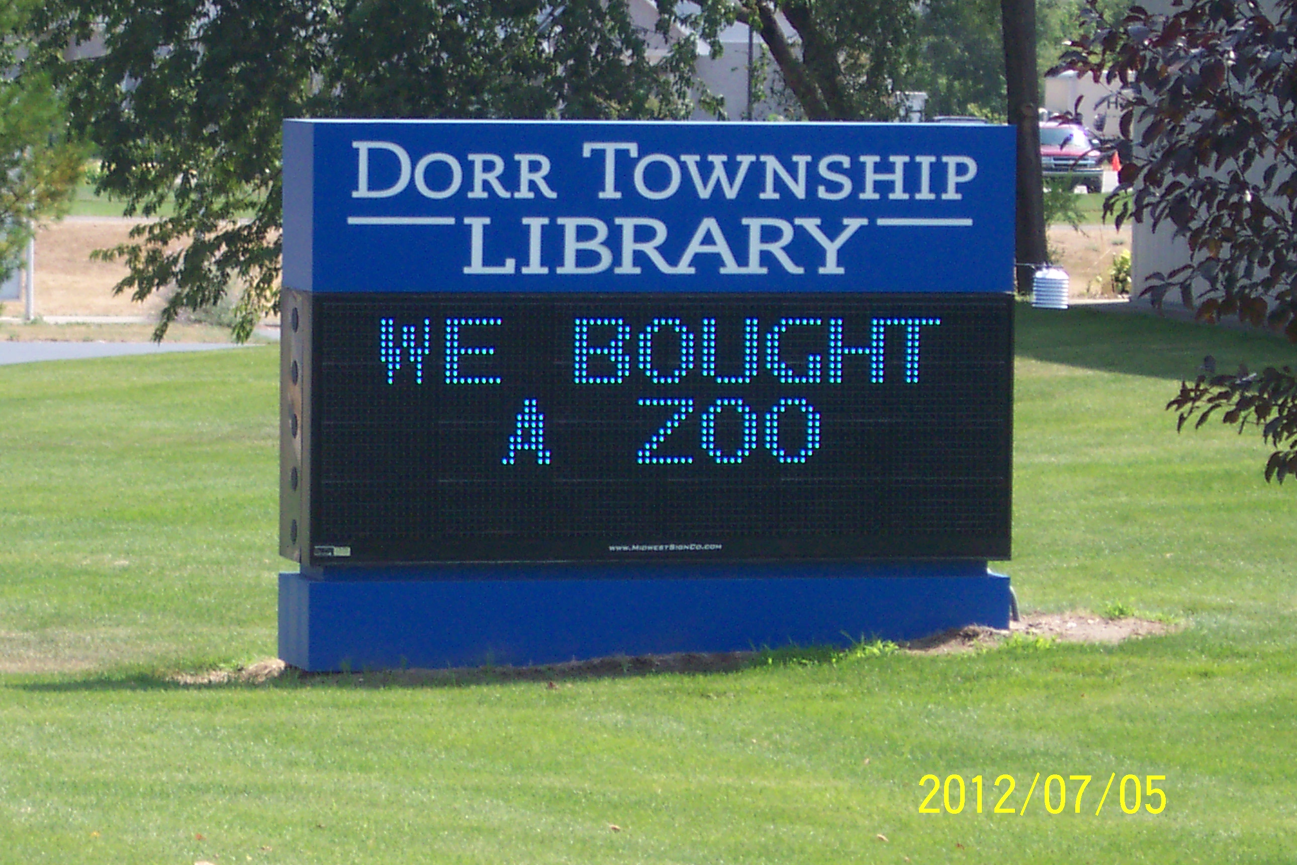 While most businesses and churches use a painted plywood sign or something with changeable plastic letters, the library spent this money on an electronic sign. The Township Board took no action to correct it and then gave the Library Board tens of thousands more to spend.